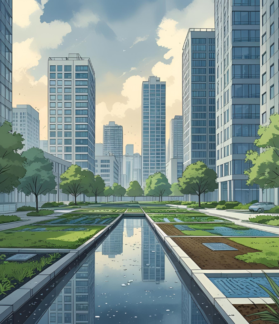 Regenwassermanagement als Teil intelligenter Stadtentwicklung – mit Schnittstellen zu Energieversorgung, Gebäudekühlung oder Entsiegelungsstrategien.