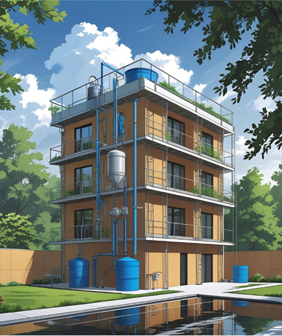 Regenwassernetzwerke mit gemeinsamem Pufferspeicher und Bedarfsabgleich zwischen mehreren Gebäuden – ökologisch und förderfähig.